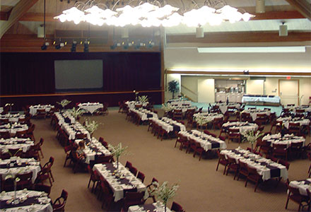 Founders Hall is an extraordinary facility with its 65 foot arches and beautiful iron chandelier with glass globes hand blown by our Village glass artist. A carpeted 10,000 square foot exhibition area, Founders Hall can be set to serve 650 banquet style or seat up to 1,000 people theater style. Without chairs, the hall becomes a center for receptions, trade show and exhibitions, including Sauder Village annual quilt, rug hooking, woodcarving and dolls shows.