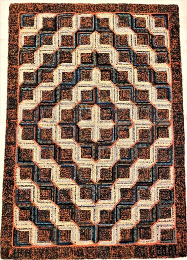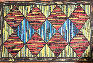 Geometric patterns are another area that allows tremendous creativity with color and pattern and are a joy to hook. Jyl likes to put a spin on her geometrics by adopting a challenging color plan that is unexpected or to change the pattern to a unique design.