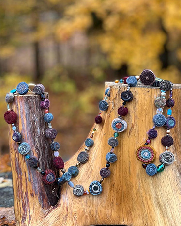 Supply description: Wool, thread, needle, threader, beads, & spacers - everything needed to complete one 30-36” necklace.