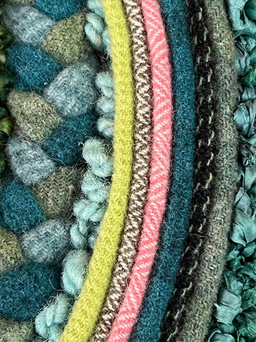 Yvonne is a multi-disciplinary fibre artist whose work explores the combination of materials and processes. A lifelong learner, her work is constantly evolving through medium, form and scale, although her love of wool, in its many forms, often shines through. Her use of texture, colour and dimension seek to draw the viewer in to encourage touch and engagement. Yvonne enjoys the challenges of combining many techniques in one piece which may include rug hooking, braiding, stitching, felting, punch needle and quilting.