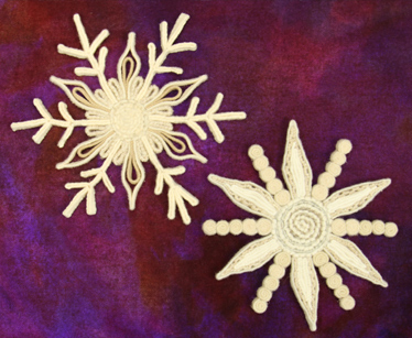 Free form quilling may be done using hand stitching or glueing. Both techniques have advantages and disadvantages which will be discussed so students learn which method is more appropriate for a particular application. This snowflake project utilizes a combination of both techniques. Annette will share many helpful hints, tips and suggestions on free form quilling in general as well as those specific to these snowflake mats.