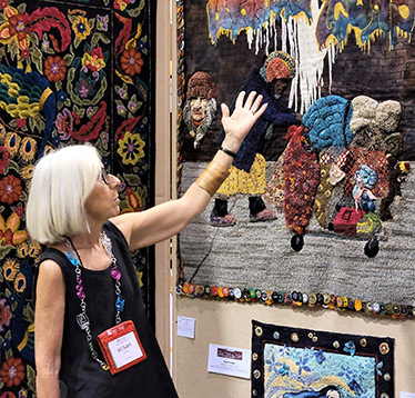 This is a guided residency - meaning that the students will be using Rug Hooking Week as their “educational studio.” It is a collaboration experience! RHW is filled with unlimited resources: an immense exhibit of creative fiber art to study, thousands of talented fiber artists to network with, and numerous vendors with fiber art supplies, equipment, materials and other goods. Susan will guide you through RHW, to find those aspects that are important to your fiber art today, as well as future work.