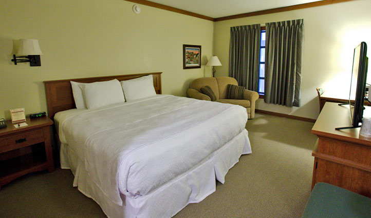 98 guest rooms: A combination of queen/queen, king rooms and suites. All rooms have a small refrigerator and some rooms also have a small recliner or couch. Free, high-speed Internet access is available in all guest rooms.
