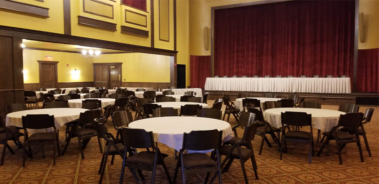 The 1920s Theater seats up to 120 for a meal or meeting and 120 theater style for a movie or concert. Founder’s Hall is a great location for larger events.