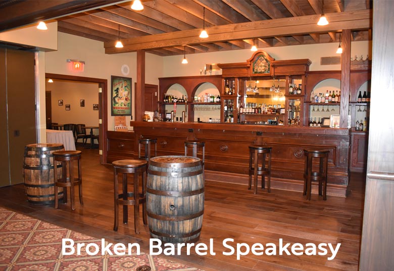 Adjacent to the 1920s Theater is the 1920s Speakeasy, that can be rented to serve an elevated bar menu of tantalizing Prohibition cocktails made with house made syrups, juices and fresh herbs grown right here at Sauder Village. Our Prohibition cocktails are concocted with the finest bourbon, vodka, gin, bitters, mixers that the 6 Prohibition distilleries have to offer. We have wonderful wines from around the world in our cellar and our beers on tap are Prohibition and craft beers. The Speakeasy can be rented for small groups of 25-30 or less or can be rented along with the theater for a larger group up to 120.